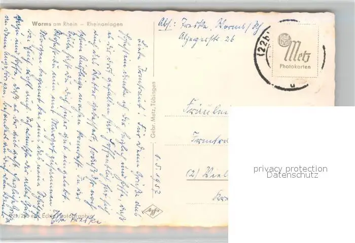 Worms_Rhein Rheinanlagen Worms Rhein postalisch gelaufen 1957 Erhaltung siehe scans [KathaD81] Kathoren