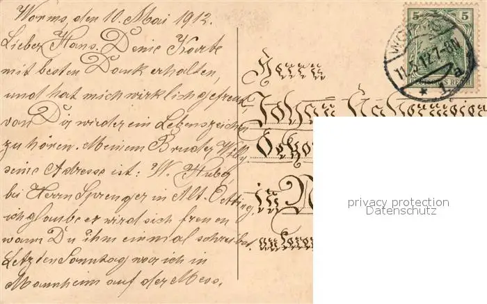 Worms_Rhein Strassenbruecke Worms Rhein postalisch gelaufen 1912 Erhaltung siehe scans [WerneD78] WernPID7