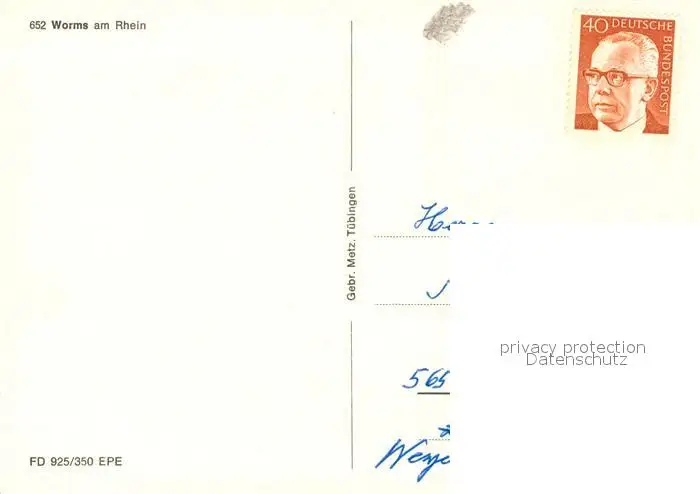 Worms_Rhein Worms Rhein postalisch nicht gelaufen nach 1965 Erhaltung siehe scans [PaolaD17] PaolPID1