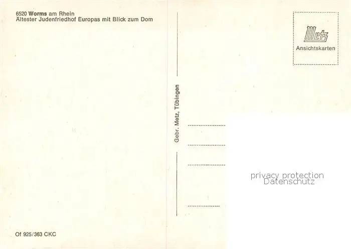 Worms_Rhein aeltester Judenfriedhof Europas Dom Worms Rhein postalisch nicht gelaufen nach 1965 Erhaltung siehe scans [KathaD81] Kathoren
