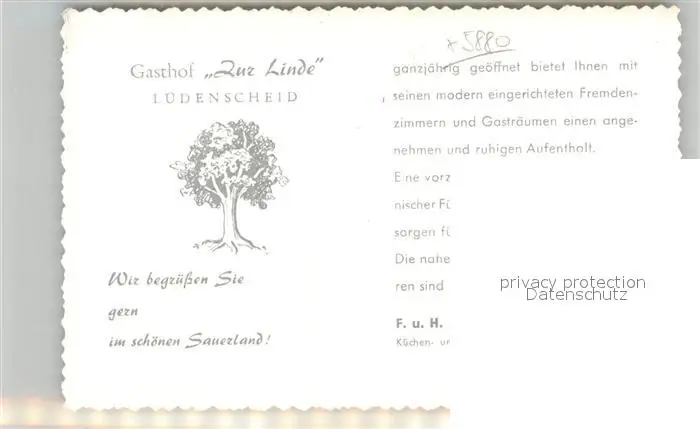 Worth_Luedenscheid Gasthaus Zur Linde postalisch nicht gelaufen nach 1965 Werbekarte (keine Postkarte) Erhaltung siehe scans [LiesaD40] Werbekarte (keine Postkarte) LiesID40