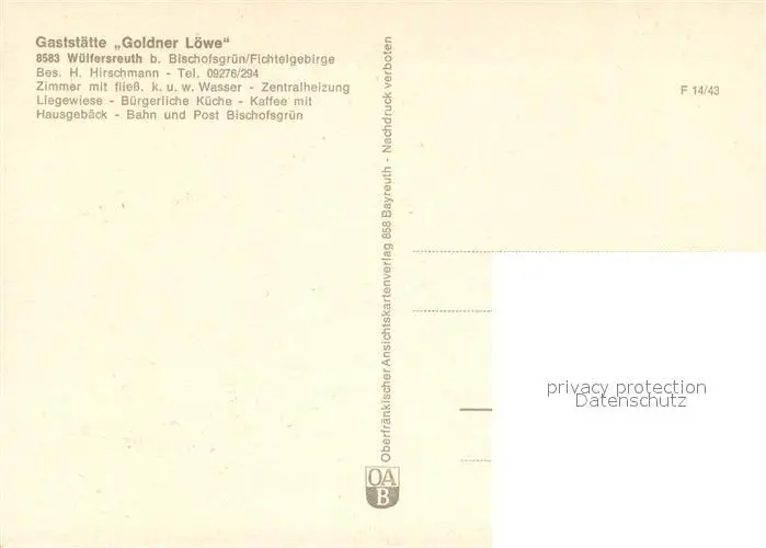 Wuelfersreuth Gaststaette Goldner Loewe Restaurant Terrasse Landschaftspanorama Fichtelgebirge Wuelfersreuth postalisch nicht gelaufen nach 1965 Erhaltung siehe scans [FriedD77] Frierer