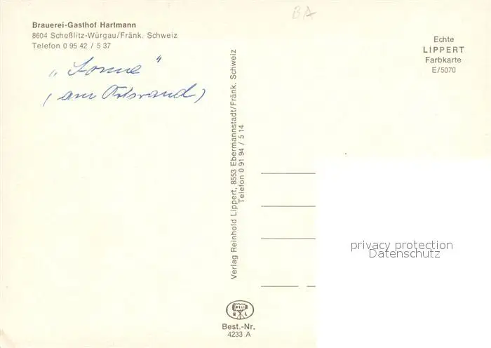 Wuergau Brauerei Gasthof Hartmann Restaurant Wuergau postalisch nicht gelaufen nach 1965 Erhaltung siehe scans [FriedD77] Frierer