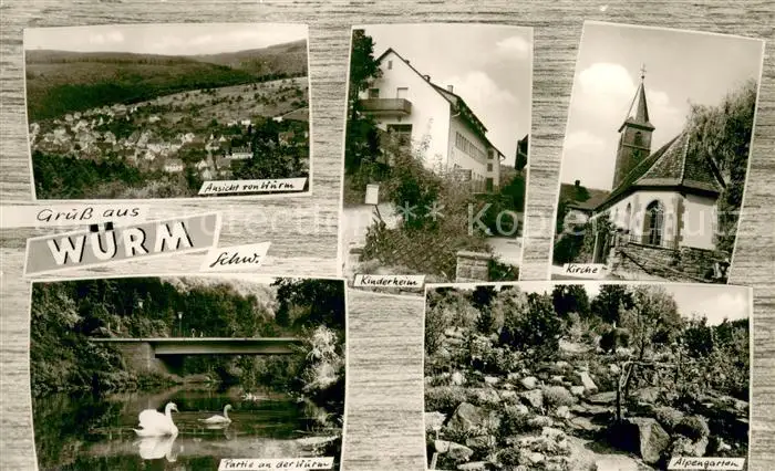 AK / Ansichtskarte Wuerm_Pforzheim Panorama Partie an der Wuerm Kinderheim Kirche Alpengarten Wuerm Pforzheim