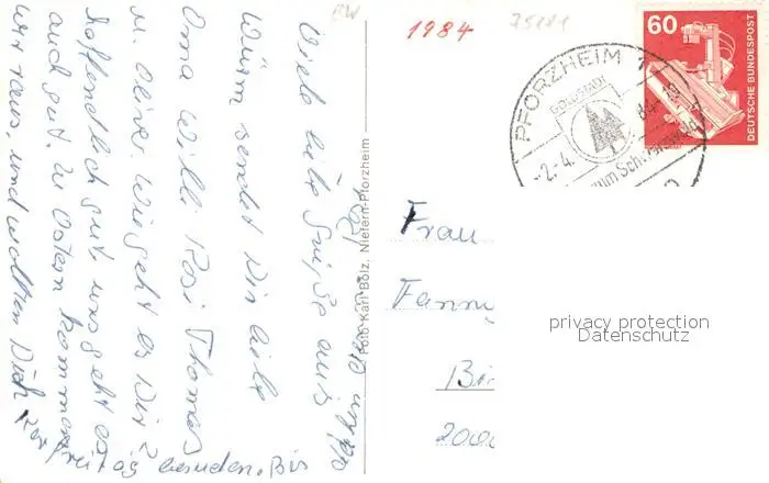 Wuerm Pforzheim Kategorie Alte Ansichtskarten Postkarten bx93536 Wuerm_Pforzheim Panorama Partie an der Wuerm Kinderheim Kirche Alpengarten Wuerm Pforzheim postalisch gelaufen 1984 Erhaltung siehe scans [WerneD78]