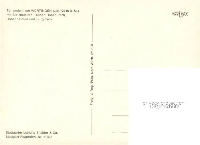 Wuertingen Fliegeraufnahme mit Bleichstetten Ruinen Hohenurach Hohenneuffen und Burg Teck Wuertingen postalisch nicht gelaufen nach 1965 Erhaltung siehe scans [WerneD78] WernPID7