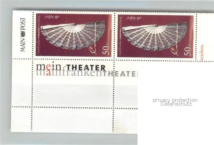 Wuerzburg Briefmarken Theaterspende Verein zur Foerderung des Mainfranken Theaters Wuerzburg postalisch nicht gelaufen nach 1965 Werbemarke (keine Postkarte) Erhaltung siehe scans [FriedD77] Werbemarke (keine Postkarte) Frierer
