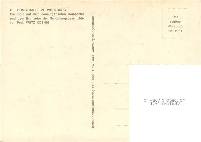 Wuerzburg Dom mit neuaufgebauten Domportal Wuerzburg postalisch nicht gelaufen nach 1965 Erhaltung siehe scans [WerneD78] WernPID7
