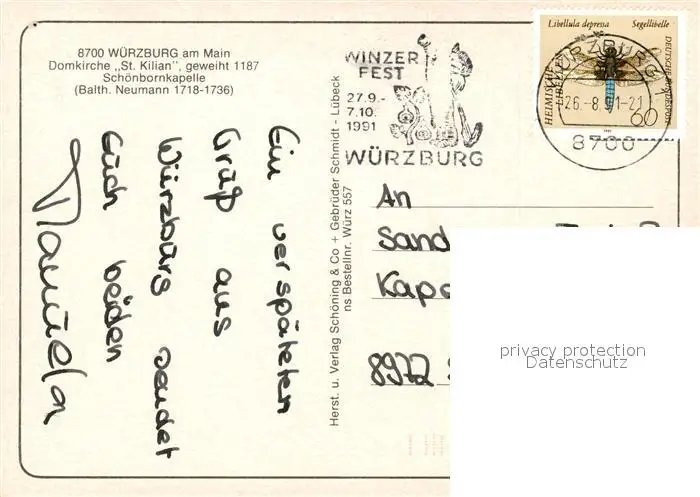 Wuerzburg Domkirche St. Kilian Schoenbornkapelle Wuerzburg postalisch gelaufen 1991 Erhaltung siehe scans [NatalD47] NataID47