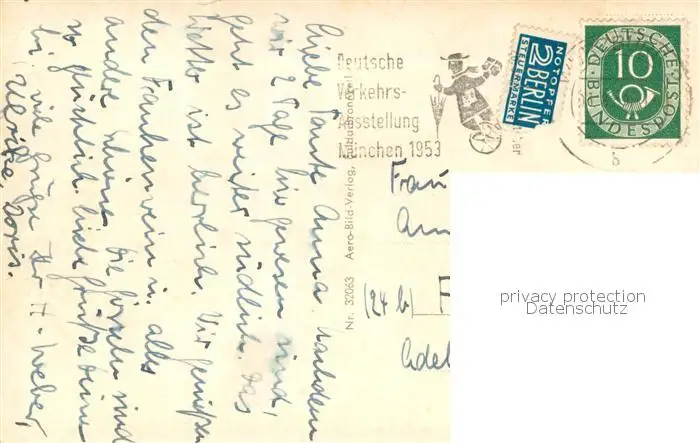 Wuerzburg Fliegeraufnahme Wuerzburg postalisch gelaufen 1953 Erhaltung siehe scans [WerneD78] WernPID7