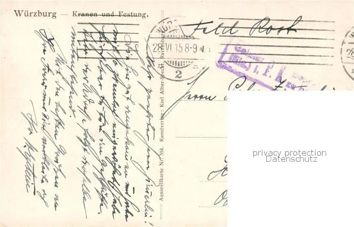 Wuerzburg Kategorie Alte Ansichtskarten Postkarten bx88200 Wuerzburg Kranen und Festung Wuerzburg postalisch gelaufen 1915 Erhaltung siehe scans [WerneD78]