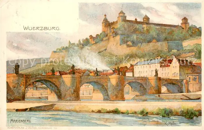 AK / Ansichtskarte Wuerzburg Marienberg Schloss Kuenstlerkarte Wuerzburg