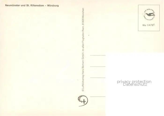 Wuerzburg Neumuenster und St Kiliansdom Fliegeraufnahme Wuerzburg postalisch nicht gelaufen nach 1965 Erhaltung siehe scans [WerneD78] WernPID7