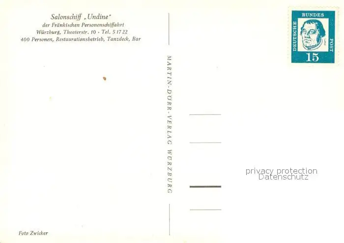 Wuerzburg Salonschiff Undine der Fraenkischen Personenschiffahrt Wuerzburg postalisch nicht gelaufen 1965 Erhaltung siehe scans [WerneD78] WernPID7