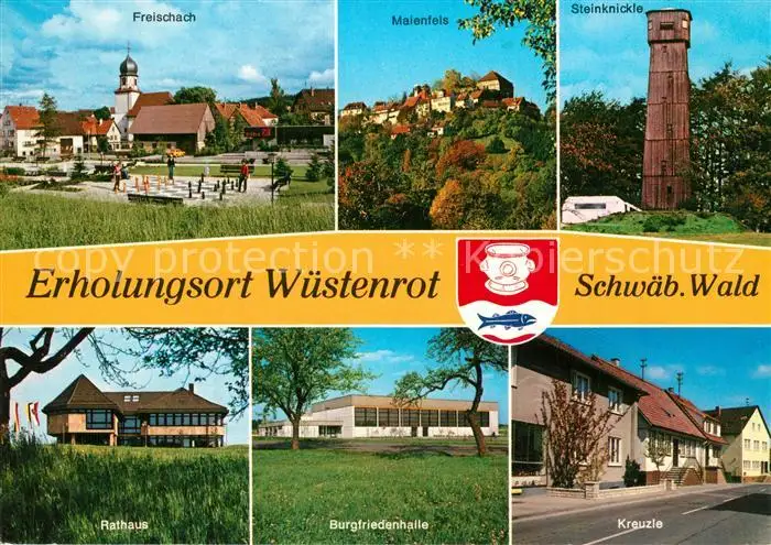 AK / Ansichtskarte Wuestenrot Freischach Maienfels Steinknickle Rathaus Kreuzle Burgfriedenhalle Wuestenrot
