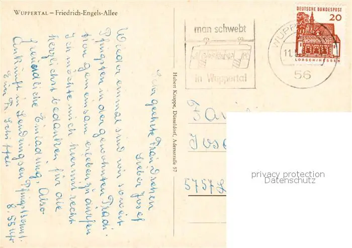 Wuppertal Friedrich Engels Allee Schwebebahn Wuppertal postalisch gelaufen 1968 Erhaltung siehe scans [FriedD77] Frierer