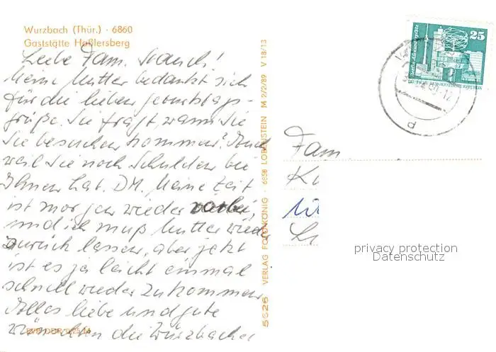 Wurzbach Kategorie Alte Ansichtskarten Postkarten bx62377 Wurzbach Gaststaette Hasslersberg Wurzbach postalisch gelaufen 1990 Erhaltung siehe scans [KathaD81]