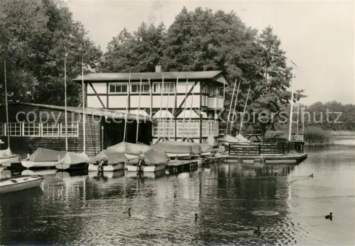 AK / Ansichtskarte Wusterhausen_Dosse Klubhaus der Segler Hafen Segelboote Wusterhausen_Dosse
