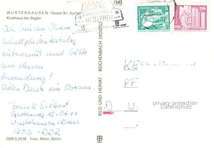 Wusterhausen_Dosse Klubhaus der Segler Hafen Segelboote Wusterhausen_Dosse postalisch gelaufen 1983 Erhaltung siehe scans [FriedD77] Frierer