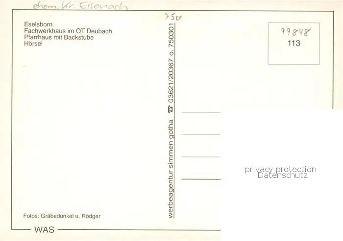Wutha-Farnroda OT Schoenau Eselsborn Fachwerkhaus im OT Deubach Pfarrhaus mit Backstube Hoersel Wutha-Farnroda postalisch nicht gelaufen nach 1965 Erhaltung siehe scans [WerneD78] WernPID7