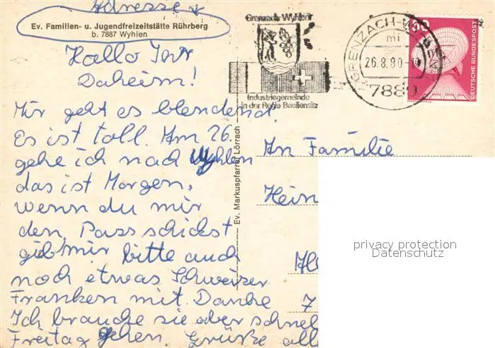 Wyhlen Ev. Familien- und Jugendfreizeitstaette Ruehrberg Swimming Pool Wyhlen postalisch gelaufen 1980 Erhaltung siehe scans [FriedD77] Frierer