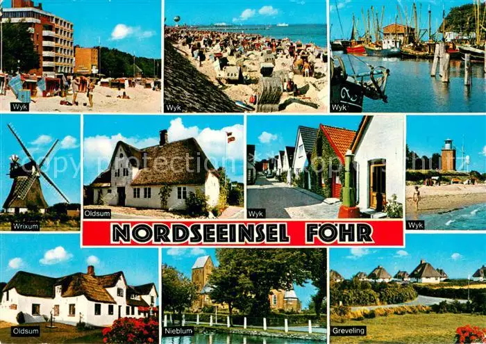 AK / Ansichtskarte Wyk_Foehr Strandpartien Fischereihafen Wrixum Oldsum Wyk Oldsum Nieblum Greveling Foehr