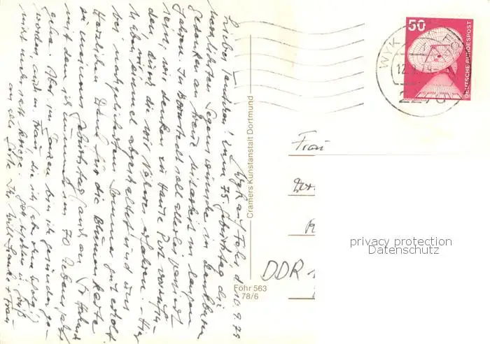 Wyk_Foehr Strandpartien Fischereihafen Wrixum Oldsum Wyk Oldsum Nieblum Greveling Foehr postalisch gelaufen 1979 Erhaltung siehe scans [FriedD77] Frierer
