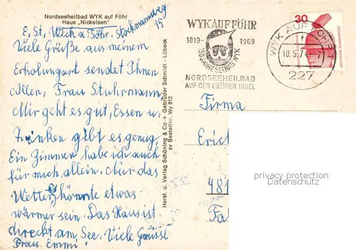 Wyk__Foehr Haus Nickelsen postalisch gelaufen 1974 Erhaltung siehe scans [FriedD77] Frierer