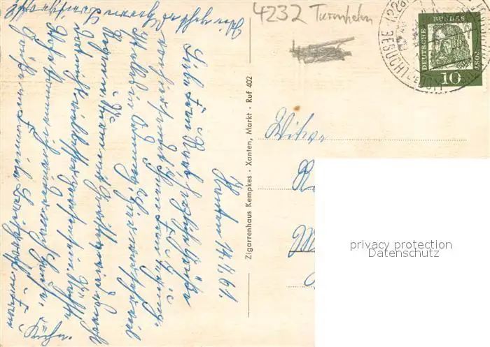 Xanten Ehem. Karthaeuserkloster Muehle Dom Markt Klever Tor Schule Amphitheater Xanten postalisch gelaufen 1961 Erhaltung siehe scans [FriedD77] Frierer