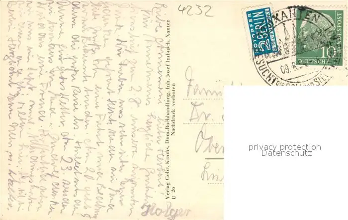 Xanten Klever Tor Xanten postalisch gelaufen 1954 Erhaltung siehe scans [FriedD77] Frierer