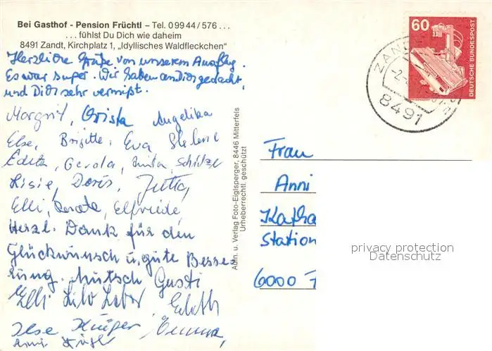 Zandt Oberpfalz Kategorie Alte Ansichtskarten Postkarten bx54719 Zandt_Oberpfalz Gasthof Fruechtl Kellerberg Kaitersberg Zandt Oberpfalz postalisch gelaufen nach 1965 Erhaltung siehe scans [NatalD47]