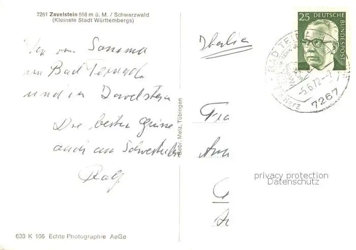 Zavelstein Burgruine Zavelstein postalisch gelaufen 1972 Erhaltung siehe scans [WerneD78] WernPID7