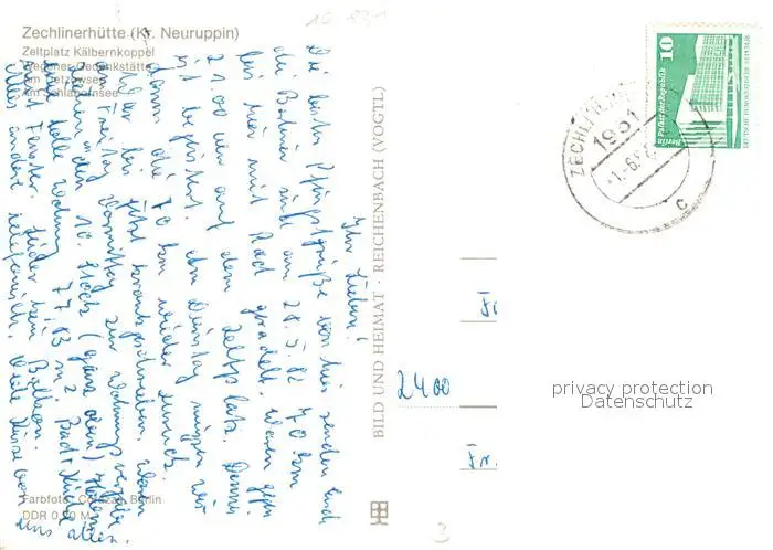 Zechlinerhuette Zeltplatz Kaelbernkoppel Wegener Gedenkstaette Tietzowsee Schlabornsee Zechlinerhuette postalisch gelaufen 1981 Erhaltung siehe scans [FriedD77] Frierer