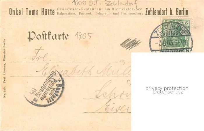 Zehlendorf_Berlin Onkel Toms Huette Zehlendorf_Berlin postalisch gelaufen 1905 Erhaltung siehe scans [LiesaD40] LiesID40