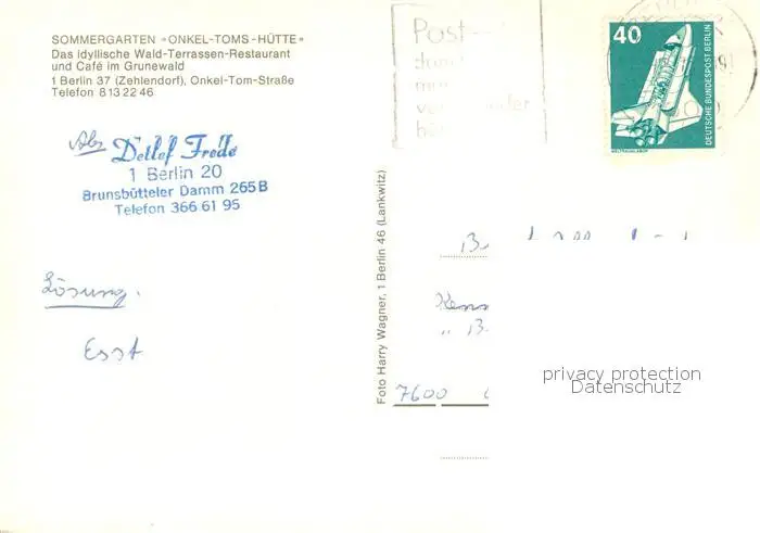 Zehlendorf_Berlin Sommergarten Onkel Toms Huette Wald Terrassen Restaurant Zehlendorf_Berlin postalisch gelaufen 1977 Erhaltung siehe scans [WerneD78] WernPID7