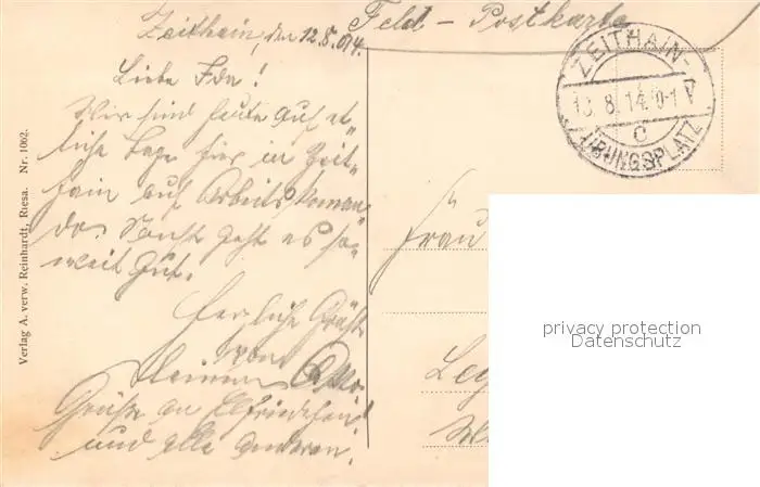 Zeithain Truppen-Uebungsplatz Kantine im Infanterie Barackenlager Zeithain postalisch gelaufen 1914 Feldpost - Stempel Erhaltung siehe scans [LiesaD40] Feldpost - Stempel LiesID40