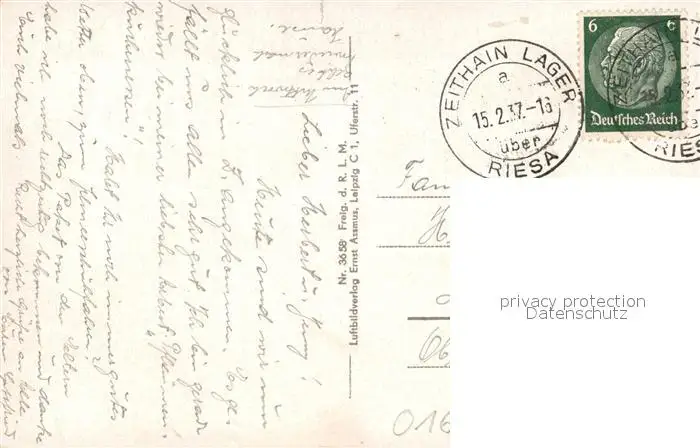 Zeithain Truppenuebungsplatz Fliegeraufnahme Zeithain postalisch gelaufen 1937 Erhaltung siehe scans [FriedD77] Frierer
