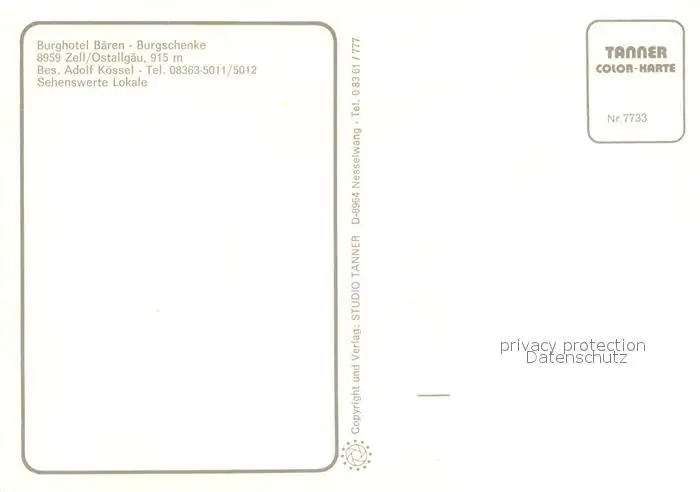 Zell_Allgaeu Burghotel Baeren Burgschenke Zell Allgaeu postalisch nicht gelaufen nach 1965 Erhaltung siehe scans [WerneD78] WernPID7