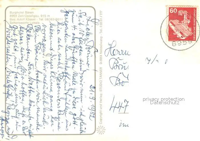 Zell_Allgaeu Burghotel Baeren Zell Allgaeu postalisch gelaufen 1982 Erhaltung siehe scans [WerneD78] WernPID7