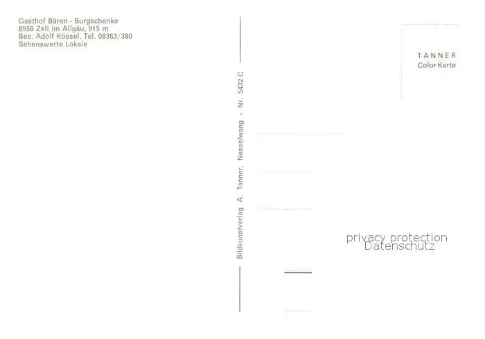 Zell_Allgaeu Gasthof Baeren Burgschenke Zell Allgaeu postalisch nicht gelaufen nach 1965 Erhaltung siehe scans [WerneD78] WernPID7