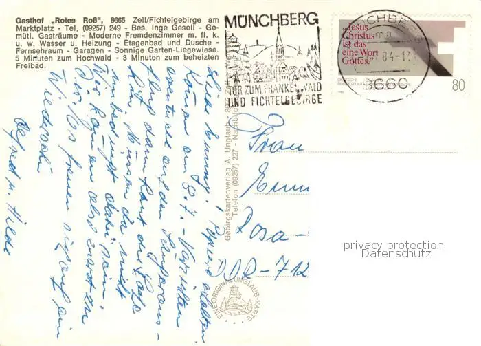 Zell_Fichtelgebirge Gasthof Rotes Ross Treppe Zimmer Garten Gastraum Zell Fichtelgebirge postalisch gelaufen 1984 Erhaltung siehe scans [WerneD78] WernPID7