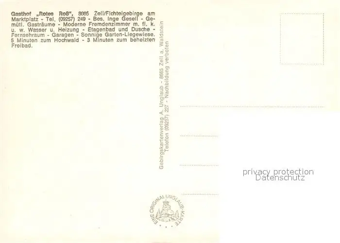 Zell_Fichtelgebirge Gasthof Rotes Ross Treppenaufgang Zimmer Garten Gastraum Zell Fichtelgebirge postalisch nicht gelaufen nach 1965 Erhaltung siehe scans [WerneD78] WernPID7