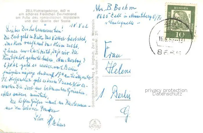 Zell_Fichtelgebirge Panorama Blick vom Arnsteinfels Ochsenkopf Waldsteinfall Wasserfall Zell Fichtelgebirge postalisch gelaufen 1962 Erhaltung siehe scans [FriedD77] Frierer