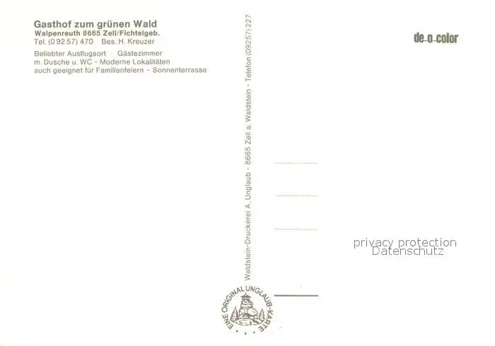Zell_Fichtelgebirge Panorama Gasthof zum gruenen Wald Walpenreuth Haus Kreuzer Gaestezimmer Gastraeume Zell Fichtelgebirge postalisch nicht gelaufen nach 1965 Erhaltung siehe scans [WerneD78] WernPID7