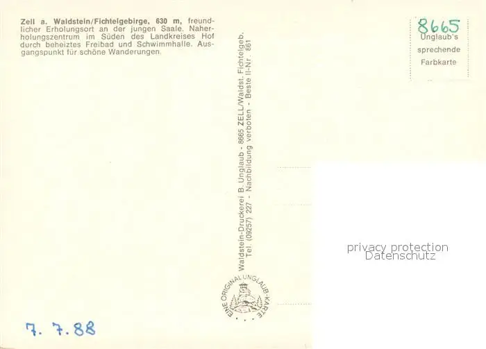 Zell_Fichtelgebirge Waldsteingipfel Panorama Saalequelle Freibad Zell Fichtelgebirge postalisch nicht gelaufen nach 1965 Erhaltung siehe scans [WerneD78] WernPID7