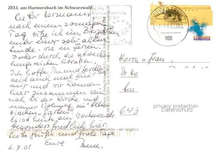 Zell_Harmersbach Fuerstenberger Hof Rathaus Storchenturm Chronik Zell Harmersbach postalisch gelaufen 2001 Erhaltung siehe scans [KathaD81] Kathoren