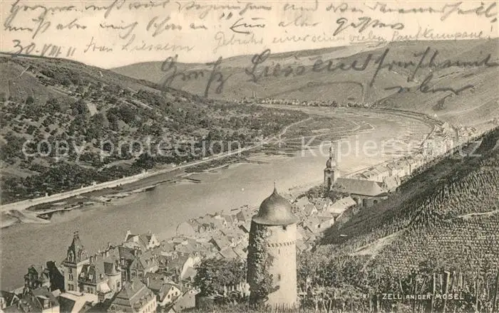 Zell_Mosel Panorama Rheintal Weinberge Zell_Mosel postalisch gelaufen 1911 Erhaltung siehe scans [FriedD77] Frierer