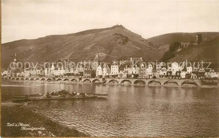 Zell_Mosel Partie an der Mosel Faehre Weinberge Bromsilber Zell_Mosel postalisch nicht gelaufen 1921-1965 Erhaltung siehe scans [FriedD77] Frierer