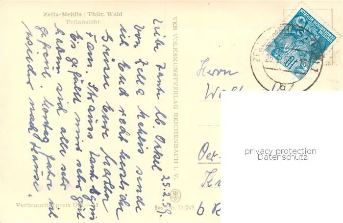 Zella-Mehlis Teilansicht Zella-Mehlis postalisch gelaufen 1959 Erhaltung siehe scans [WerneD78] WernPID7