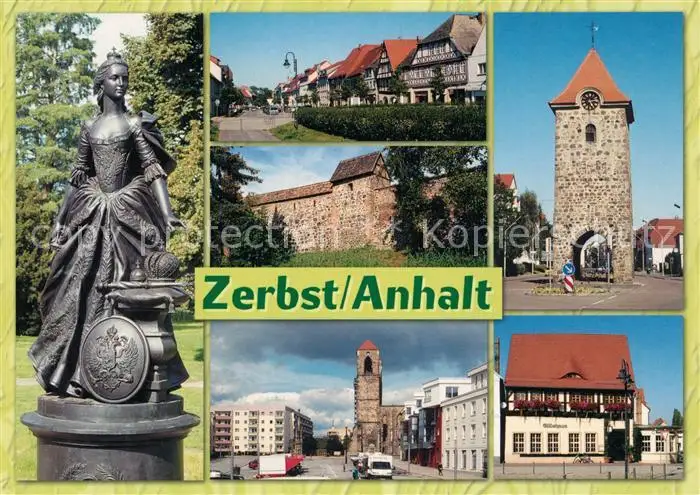 AK / Ansichtskarte Zerbst Denkmal Katharina II. Geschaeftsstrasse Breite Markt Gildehaus Zerbst